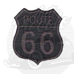 PARCHE ROUTE 66 ROSA BRILLO. Medidas 8,5 X 8 cm.