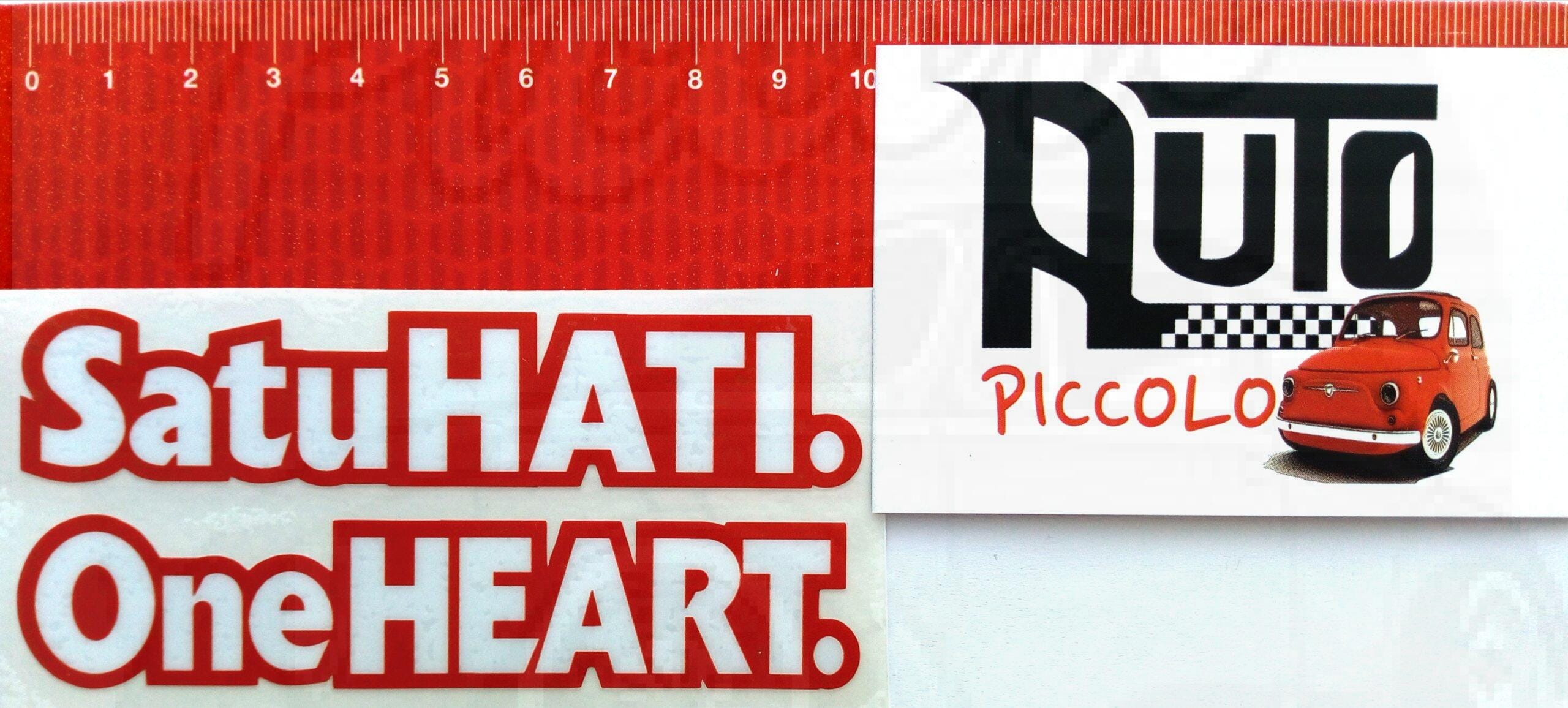 Pegatina vinilo sticker SATUHATI ONEHEART para superficies lisas. 1 unid. 10 X 4,5 cm.
